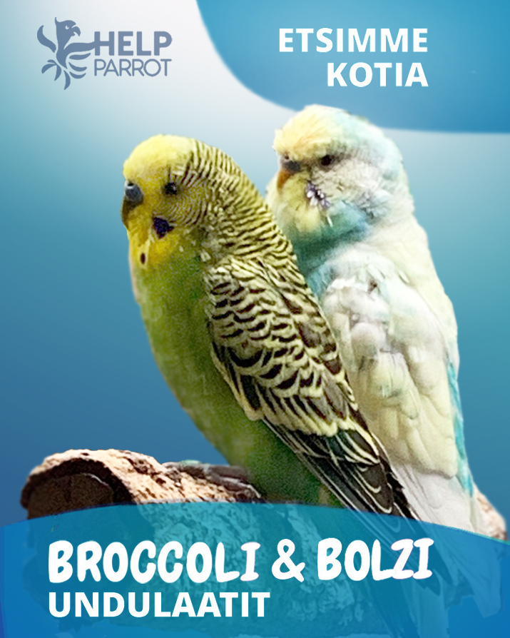 Keltavihreä Broccoli ja turkoosinkeltainen Bolzi ovat asettuneet sijaishoitopaikkaan, joskin höyhenpuvun uusimisaika on ollut heillä meneillään (siksi ulkoasussa on lähiaikoina ollut hienoista "nukkavieruutta"). Pojiksi (oletetut) undulaatit ovat olleet tyytyväisen oloisia kavereita ja lahjakkaan monipuolisia laulajia.