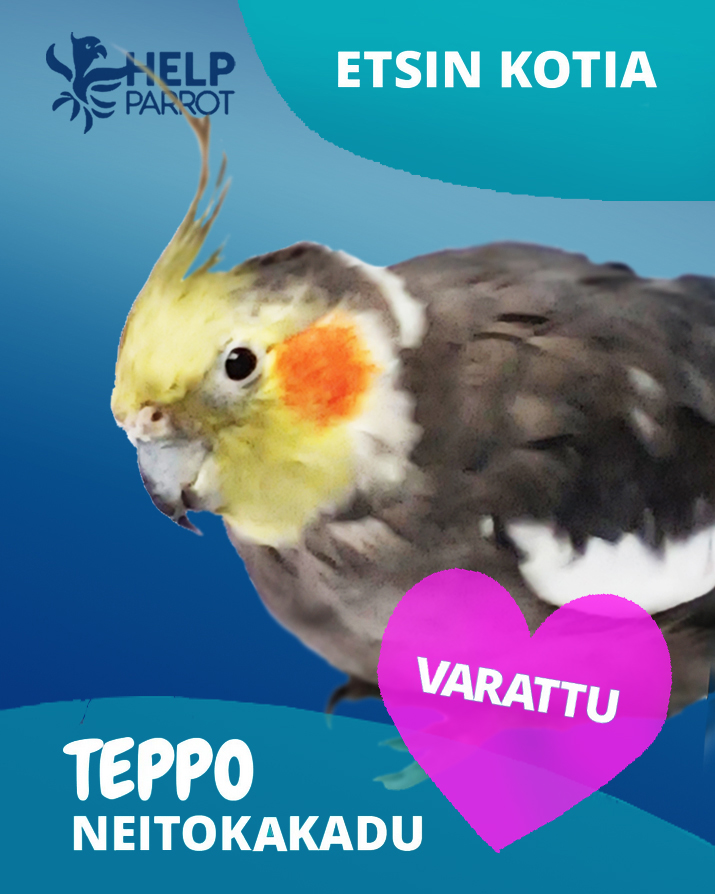 Teppo on seurallinen vanhempi herra, joka on saavuttanut kunnioitettavan 20:n vuoden iän! Hän on luonteeltaan seurallinen ja pitää kovasti muiden lintujen kanssa jutustelusta. Tepolla on niskassaan vamma, joka on aiheuttanut sen, että hänen päänsä on aina hieman kallellaan. Vamman takia Teppo ei kykene lentämään ja viettääkin tiiviisti aikaa häkin pohjalla, sillä kiipeily on hänelle myös hieman haastavaa. Haasteistaan huolimatta on Teppo kuitenkin tiivis osa muuta sijaiskodin parvea eikä hän anna tilansa estää itseään tekemästä lintumaisia juttuja! Tulevalta kodilta edellytetään sitoutumista ja halua miettiä Tepon ympäristö sellaiseksi, että elämä lattiantasossa on hänelle myös mukavaa ja turvallista.